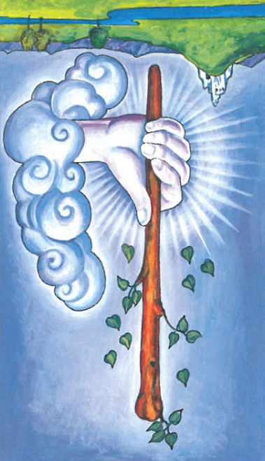 牌面描述:赤金权杖自大地破土而立,杖首烈焰如星芒跃动,暖焰不灼,却裹着燎原的热忱漫向四方。风拂过杖身,焰纹轻颤,每一缕火光都似未出鞘的勇气,大地承托着这股新生的力量,天地间淌着滚烫却温柔的行动力。