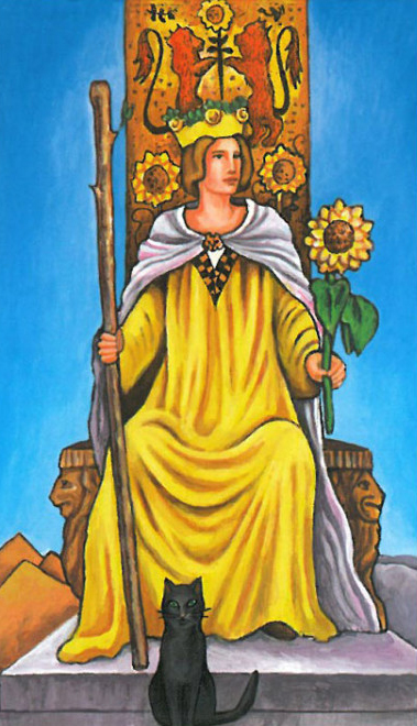 牌面描述:皇后端坐于缀满新生枝叶的橡木宝座,周身覆着暖橘色柔纱,手托的权杖生着鲜活嫩芽,焰芯是温润的暖光而非灼人的火。她的眼眸盛着火的炽热,却裹着水般的温柔,指尖轻拂过身侧盛放的红玫瑰,姿态笃定而舒展,不张扬,只以包容的母性力量,托举着周遭所有的生长与奔赴。